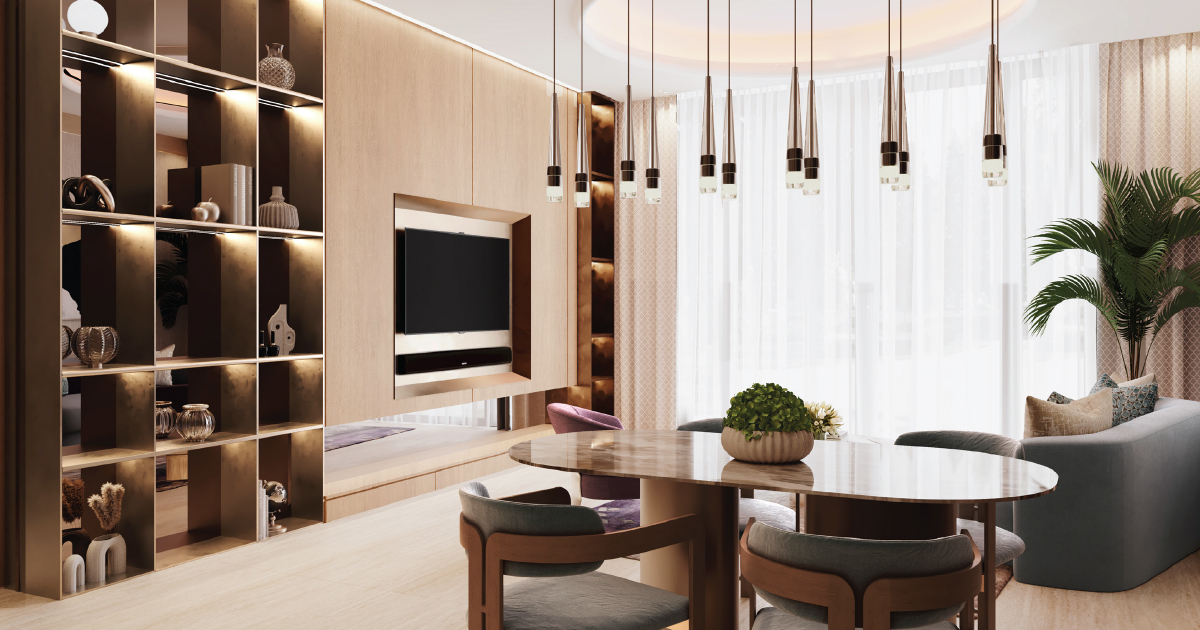 Taj Wellington Mews embodies the confluence of heritage and innovation, crafting refined luxury. Its two interconnected towers, curving atop a circular podium, form a striking statement of modernity and grandeur. Thoughtfully designed balconies enhance the façade, blending artistry with structural ingenuity for a quiet yet commanding presence.